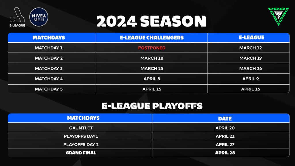 The first match day of the season will be kicked off by the 12 E-League Challengers, facing off on Monday nights with the top 4 players at the end of the regular season qualifying for brand new do-or-die playoff bracket – the Gauntlet – for a chance to take one of the final two E-League playoff spots.