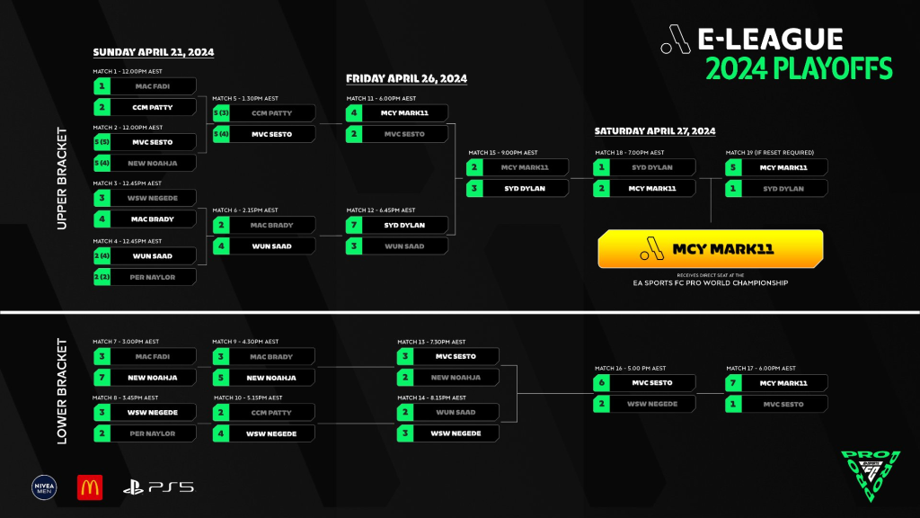 The 4 finalists from the Playoffs will play off in a best-of-one match to take one of 2 position in best-of-one match grand final to take out the $4,000 major prize and an invitation into the top 32 EA SPORTSâ„¢ FC Pro World Championships later this year!
