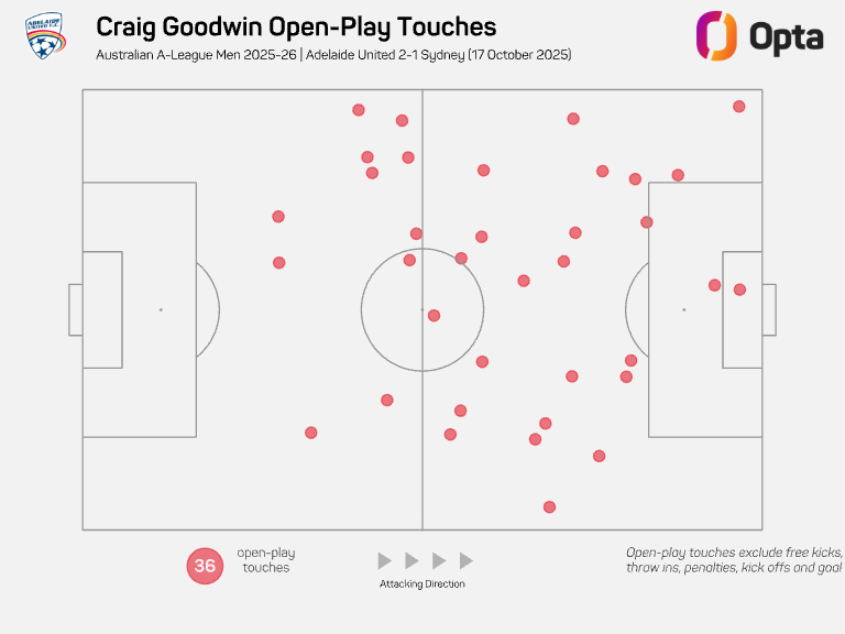 However, whilst he was disappointed not to have scored, the move highlighted the razor-like efficiency with which Adelaide were able to scythe through the Sydney defence, culminating in Goodwin getting on the end of a chance as the furthest-forward attacker.