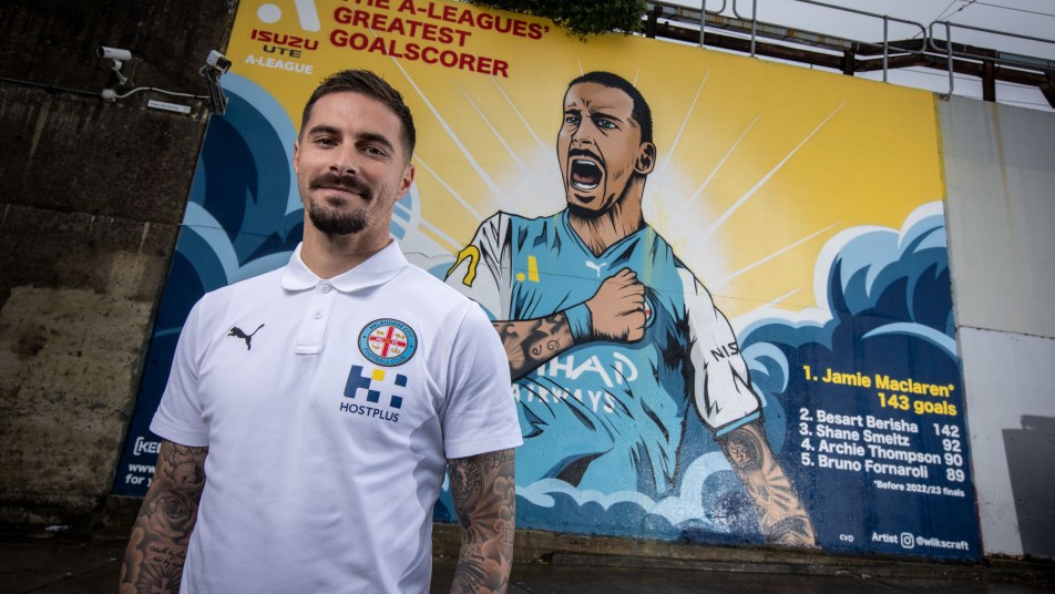 On Tuesday morning, a mural celebrating Jamie Maclaren becoming the greatest scorer in A-Leagues history was unveiled in Melbourne. DAVID DAVUTOVIC explains how the mural came to life and pays tribute to Maclaren’s record.