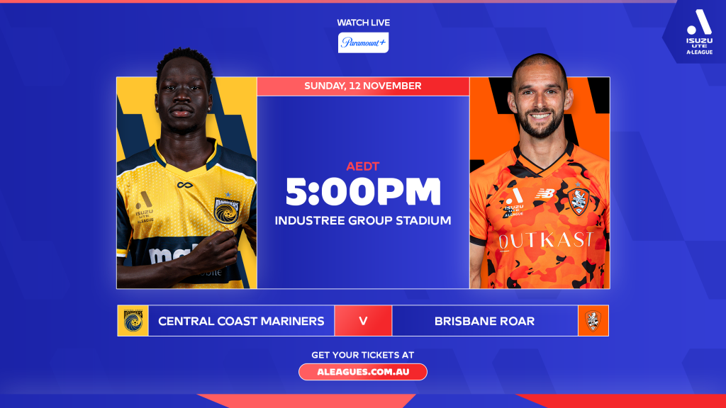 Reigning Isuzu UTE A-League champions Central Coast Mariners welcome Brisbane Roar to town in the final game of the round, as they search for their first points of the league season.