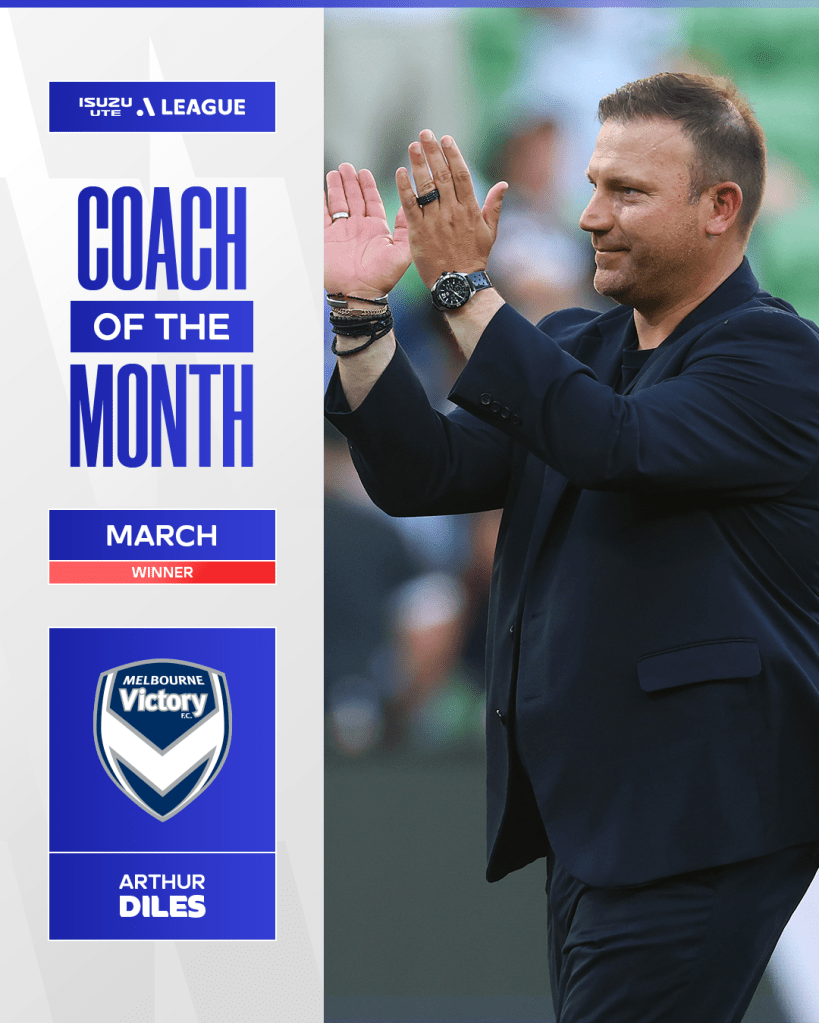 Melbourne Victory Head Coach Arthur Diles has been named Coach of the Month in the Isuzu UTE A-League for March.