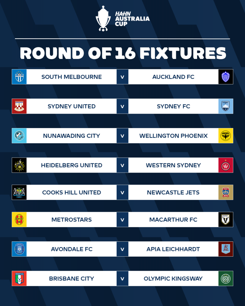 Elsewhere, it’ll be an all-Sydney affair in the Round of 16 at Sydney United Sports Centre after Isuzu UTE A-League giants Sydney FC were drawn away to 2022 cup finalists Sydney United 58.