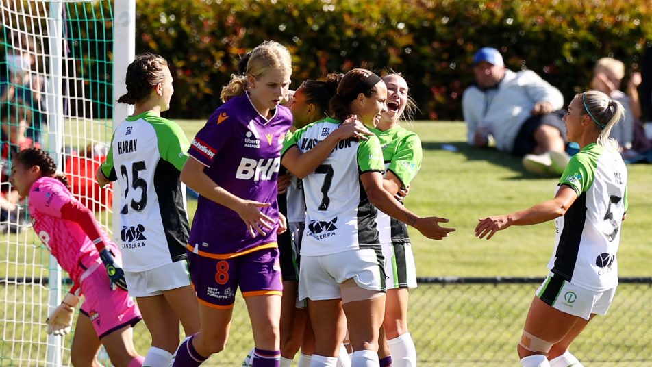 Hosts Canberra pulled a goal back in the 79th minute when American Chelsee Washington rose above two Perth defenders at the far post and powered a header into the net for her first A-League Women goal.