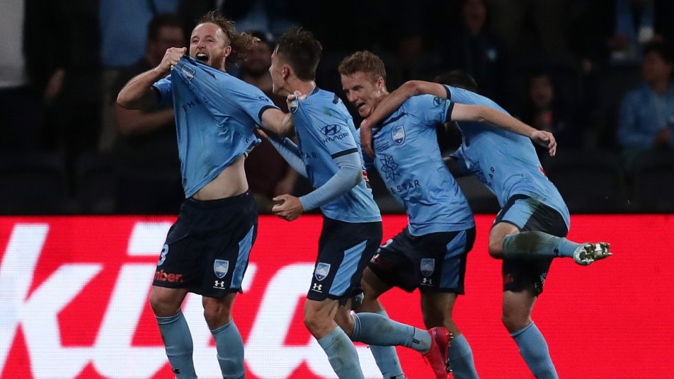 It was the Sky Blues appealing to referee Chris Beath on 27 minutes as Le Fondre took a tumble after a tangling with Good in the City penalty area, but play was waved on. Kosta Barbarouses recorded Sydney’s first shot on goal with a low, drilled effort straight at City goalkeeper Tom Glover and Le Fondre threatened with a half-chance as the four-time Champions showed signs of life heading into the half-time interval.