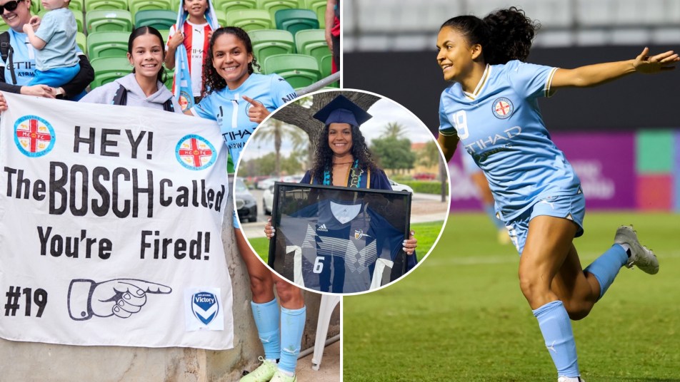 After starring for City in the Melbourne Derby, Bosch was greeting the fans at AAMI Park when she spotted a banner in the crowd featuring her name printed in bold, block letters.