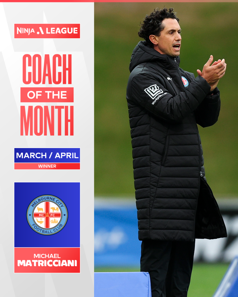 Melbourne City Head Coach Michael Matricciani has been named Coach of the Month in the Ninja A-League for March/April.