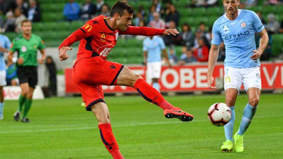 The visitors took a while to find their groove as City offered the attacking impetus early on, with Tottenham Hotspur loanee Shayon Harrison and Kearyn Baccus – who cracked the crossbar in the second minute – keeping Adelaide custodian Paul Izzo on guard.