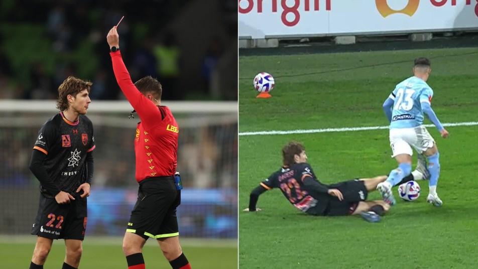 Sydney FC were reduced to 10 men in their Semi Final second leg against Melbourne City after midfielder Max Burgess was sent off for a studs-up challenge on Marco Tilio.