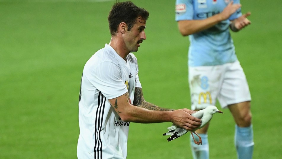 The Wellington Phoenix defender inadvertently struck a seagull with a pass in his side’s loss to Melbourne City, before pausing play to escort the injured bird from the pitch.