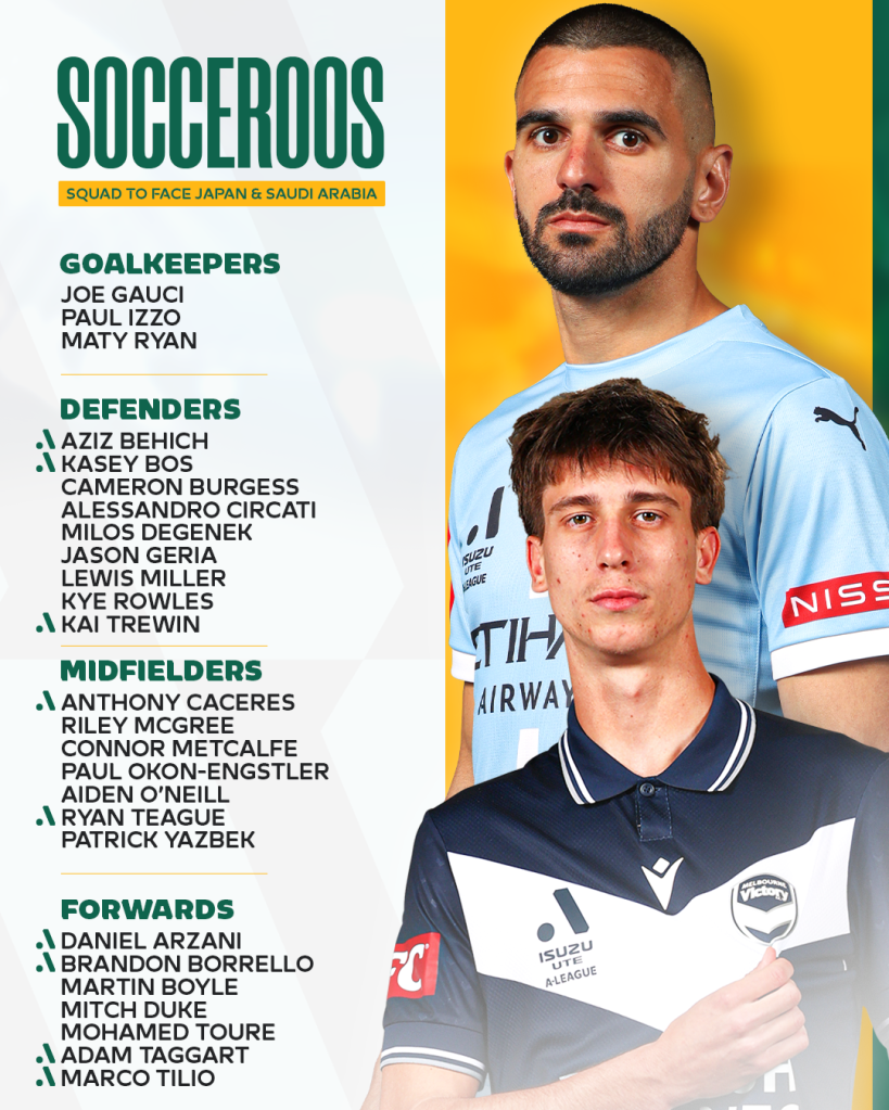 Victory teammates Ryan Teague and Daniel Arzani have also been included in the 26-man squad with the former looking to build off the back of his impressive starting debut for the national side in the recent 2-0 away win against China.
