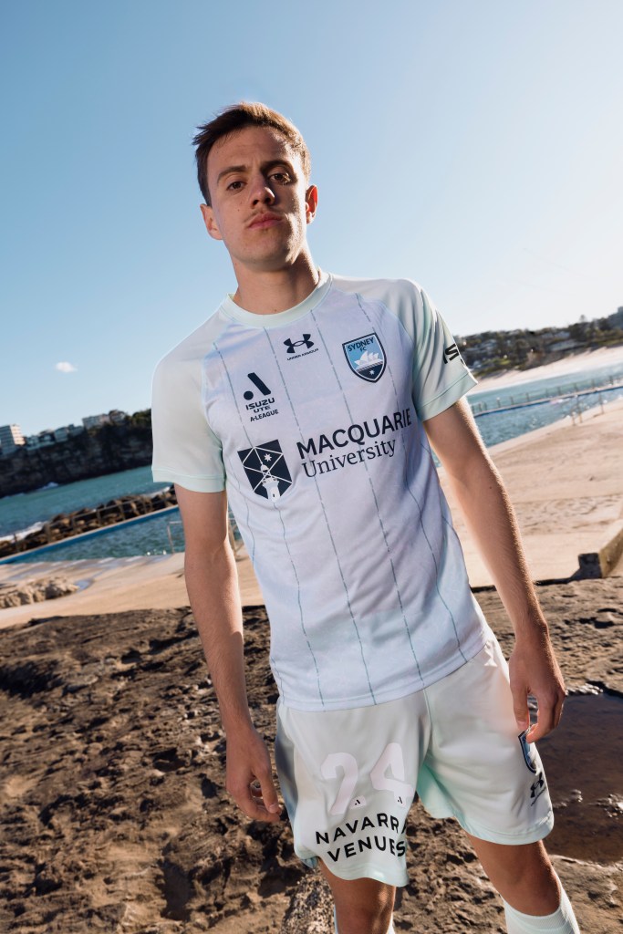 The 2025-26 away kit celebrates Sydney’s famous ocean pools, taking cues from their distinctive colours and lane markings alongside Sydney’s beaches.