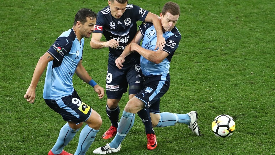 The Sydney FC skipper scuffed his header with the ball falling to Victory’s Thomas Deng who played the ball into his own net.