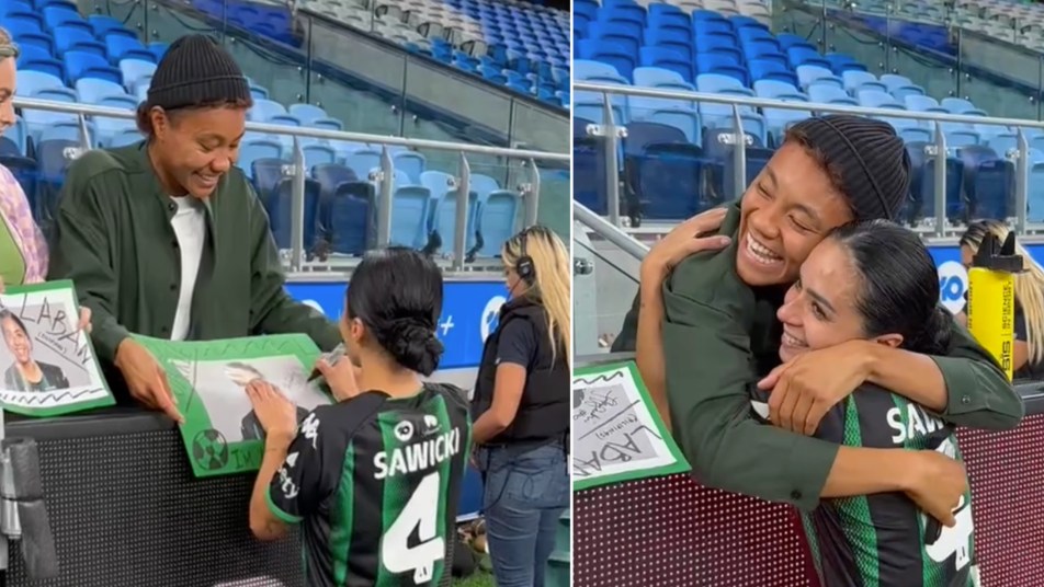 The footage shows Bolden asking her Filipinas teammate to sign her homemade poster adorned with Sawicki’s club picture. Bolden describes herself as “such a fan” of the Western captain, before asking for a hug which Sawicki warmly obliges to – before jokingly squirting water on Bolden’s poster.