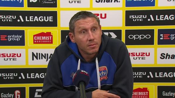 Newcastle Jets coach Mark Milligan speaks to the media following their match against Wellington Phoenix.