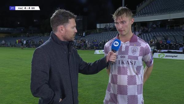 Brisbane Roar's Thomas Waddingham spoke to Paramount+ after their draw with Macarthur Bulls.