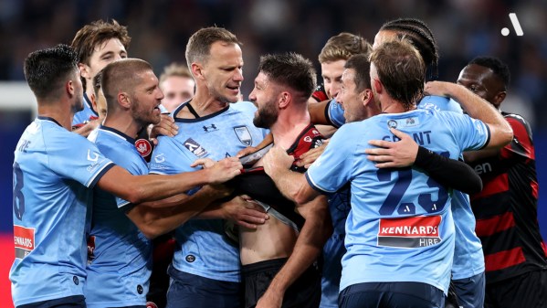 3 years ago • A-LeagueMelee madness as Sydney Derby rivalry takes centre stageIf the first ever Sydney Derby in the finals of the Isuzu UTE A-League promised fireworks then it definitely delivered with flare ups happening before and after the full-time whistle.