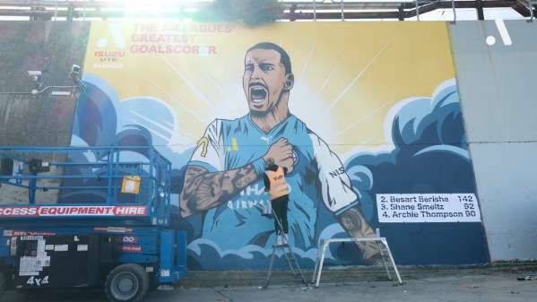 3 years ago • A-League‘Pretty surreal to be fair’ – MaclarenJamie Maclaren has been left lost for words following the presentation of a mural celebrating his record goal scoring feats that was designed and painted by Liberty club teammate Hannah Wilkinson.