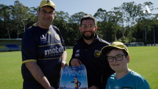 3 years ago • A-LeagueWholesome moment for young Mariners fanChristian Theoharous has made the day for a young fan after signing his custom made poster and offering him his Grand Final jersey following the match on Sunday.